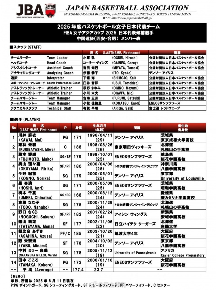 6月11日报道 日本女篮公布了本月与中国女篮进行热身赛的球员名单,高田真希、林咲希、町田瑠唯等名将均不在列。