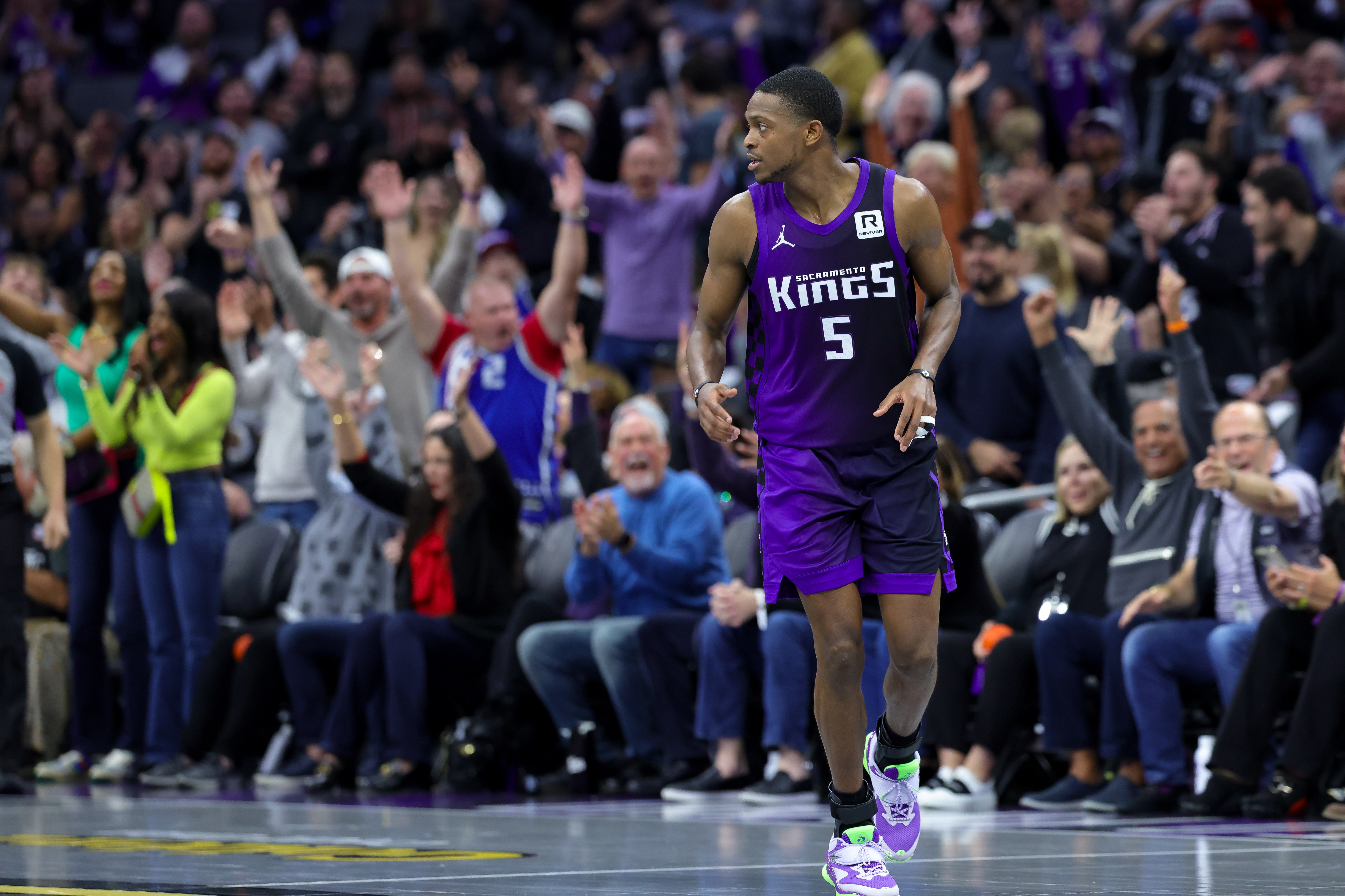 本场比赛福克斯出战36分钟,30投16中(三分4中3)、罚球19中14,砍下49分9助攻2抢断。上场对阵森林狼的比赛,福克斯得到60分3篮板7助攻3抢断1盖帽。