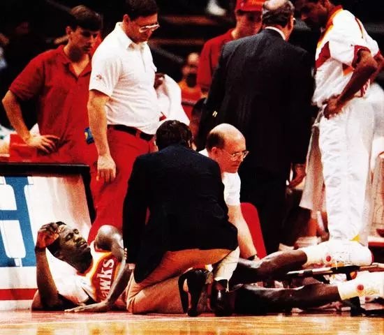 “那天倒地后我的第一反应就是抱住脚踝,不过我没有感到疼痛,那时我才明白自己并没有事,我仍然是那个可以跟拉里、魔术师、迈克尔一决高下的球员。”威尔金斯说道,“我告诉我自己:‘如果我的跟腱注定要断,那么它肯定会发生,但我一定要努力打球,拼尽全力。’这让我在心理上好受了很多。”