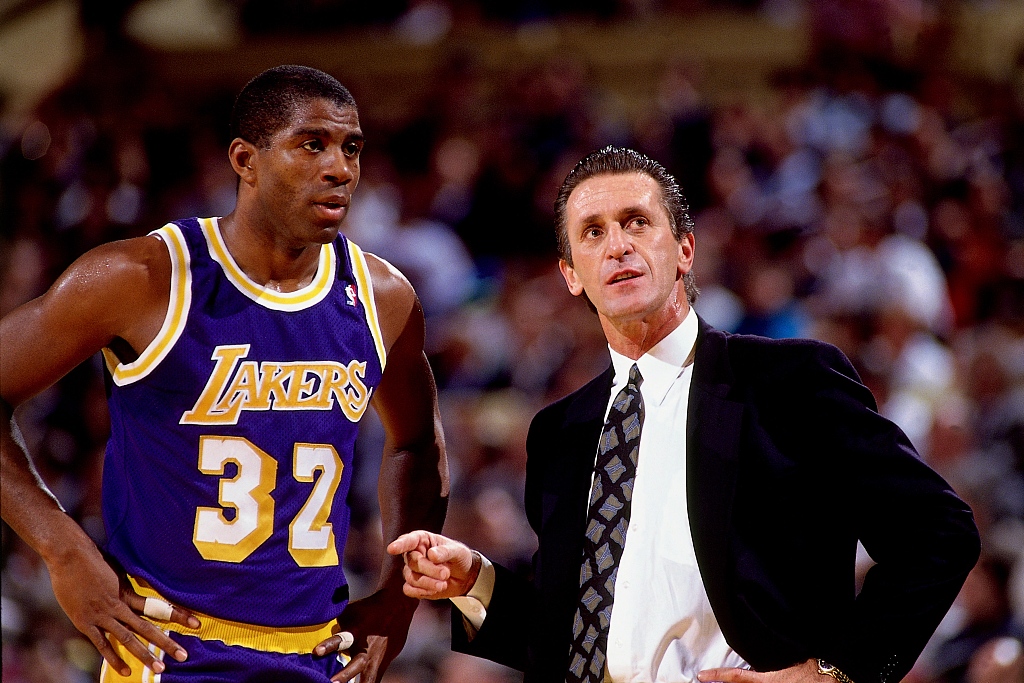 湖人在1980年赢得了总冠军,当时保罗-韦斯特海德在杰克-麦金尼(因骑自行车时发生严重事故)执教14场比赛后接任。但在经历了一个令人失望的1981赛季以及接下来赛季7胜4负的开局后,巴斯解雇了韦斯特海德,并用他的得力助手莱利取代了他的位置。莱利此前曾是湖人队的球员和解说员。
