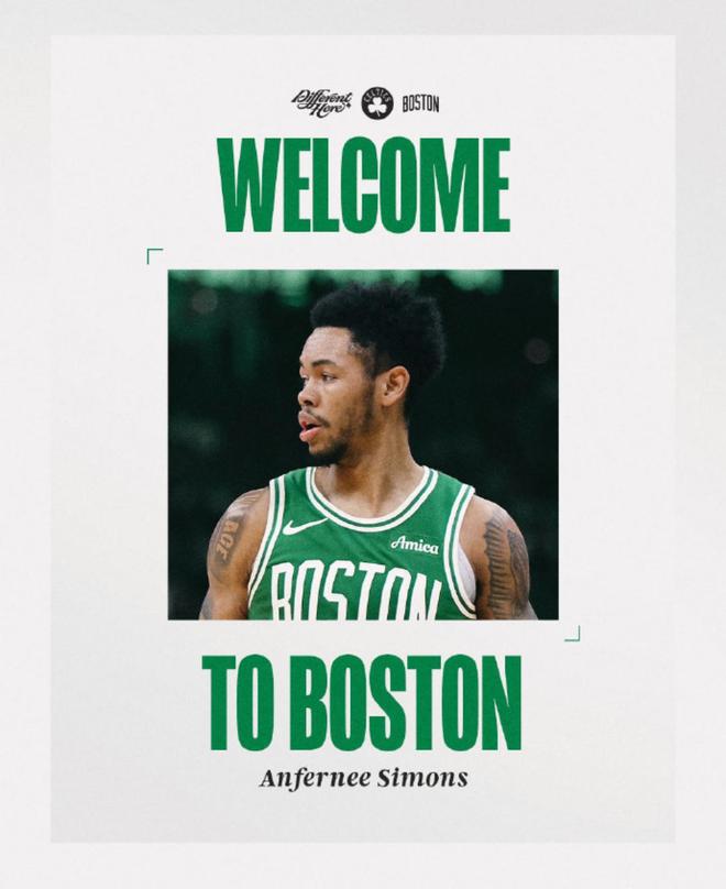 今年休赛期,凯尔特人送出朱·霍勒迪从开拓者换来了安芬尼·西蒙斯,上赛季他场均砍下19.3分2.7篮板4.8助攻,投篮命中率42.6%,三分命中率36.3%。