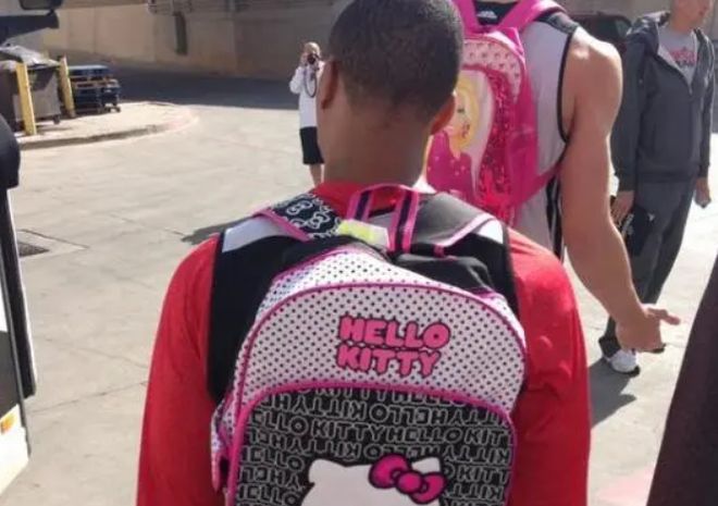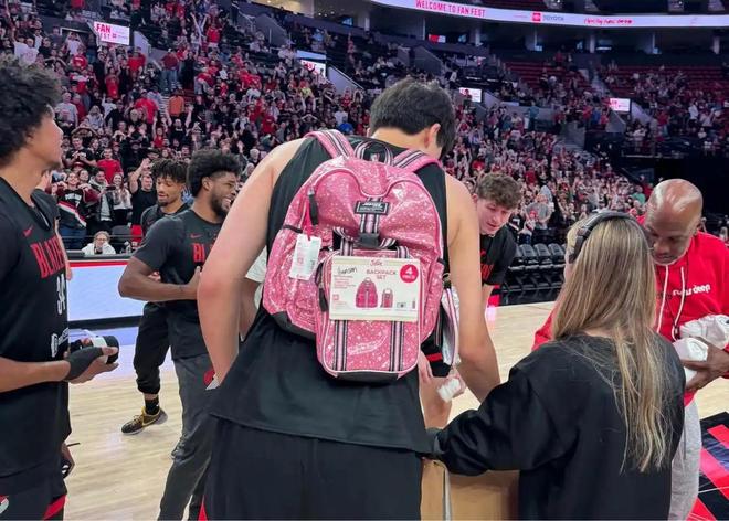 你有没有发现,最近杨瀚森总是背着一个粉红色的书包出现在镜头中。甚至当训练赛开场前,别的队友都在后面排队,只有杨瀚森背着粉红色的书包,在跟啦啦队学跳舞。