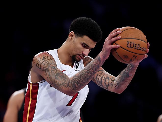 本场比赛中,热火的替补中锋克莱尔-韦尔(Kel'el Ware)的表现显然是不太理想的。韦尔全场出场12分27秒,投篮1中1,罚球2中2,得到了4分6篮板1盖帽的数据,其中还包括了3个前场篮板,还有2次犯规,正负值为-15。韦尔在进攻端看起来气势汹汹,看起来他在前场篮板争抢方面的表现相当不错,但是他在进攻端也很难起到更大的作用。最关键的是,韦尔在防守端的表现一塌糊涂,他显然缺乏足够出色的防守意识和基本的防守经验,他在防守端的效果实在是太差了一些。大家可能都在奇怪,为什么韦尔的出场时间如此受限。实际原因非常明确,韦尔在场上时球队的局面实在是太差了,他在防守端被对手各种针对,-15的正负值也能够充分说明这一点。但凡韦尔的表现好一点,热火可能都未必会输掉比赛。