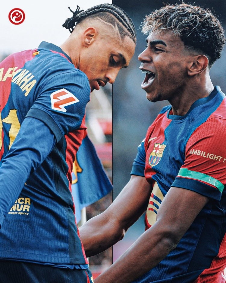 数据统计显示,拉菲尼亚是本赛季西甲唯一在运动战能够创造机会50+的球员(57次),他在26轮联赛贡献13球7助攻;亚马尔本赛季成功过人高达95次,比其他西甲球员至少多出23次,也是本赛季西甲唯一助攻上双的球员(11次)。