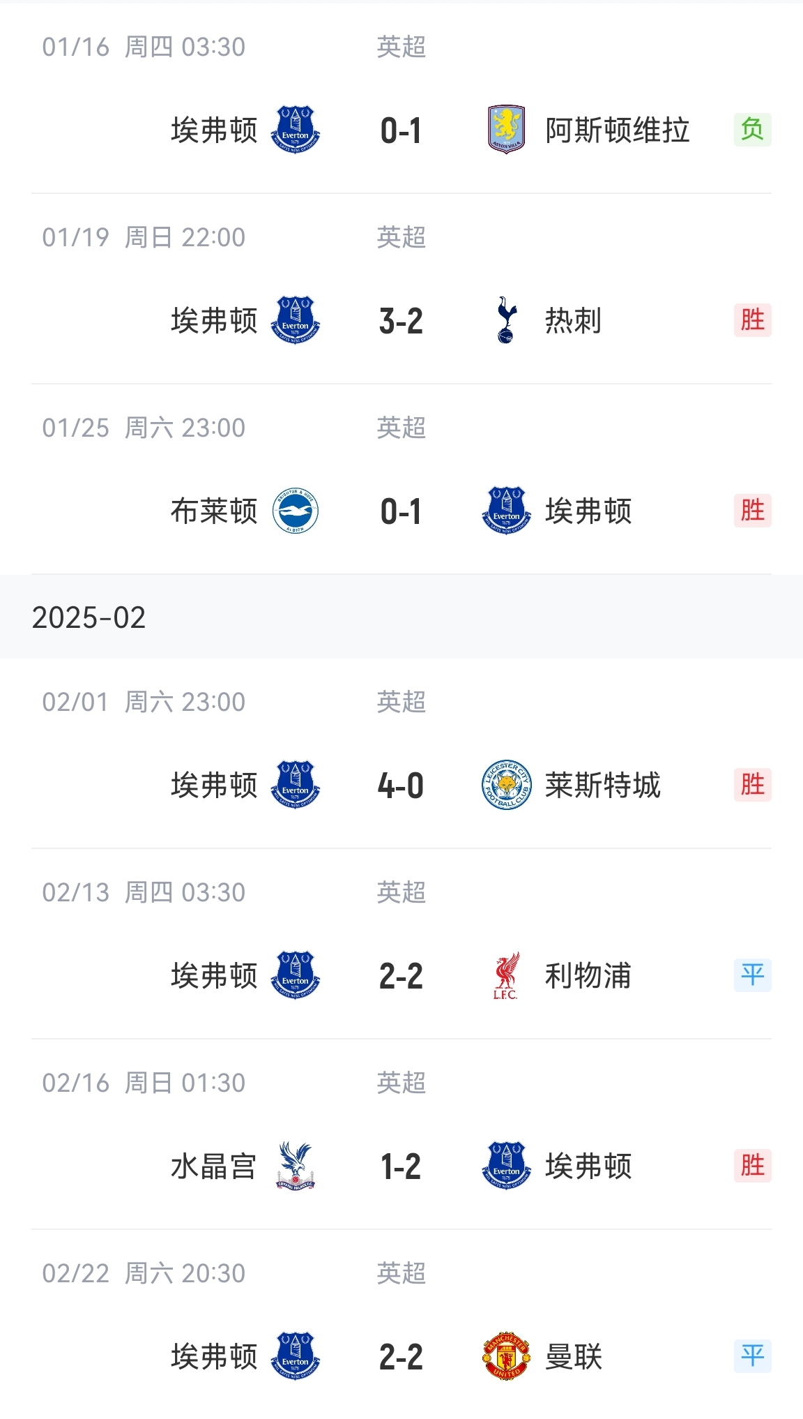 同样是赛季中途上任的莫耶斯则表现优异,除开首战不敌维拉,此后6战埃弗顿取得了4胜2平的战绩,7场比赛一共拿到14分。