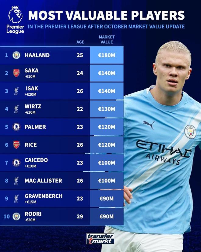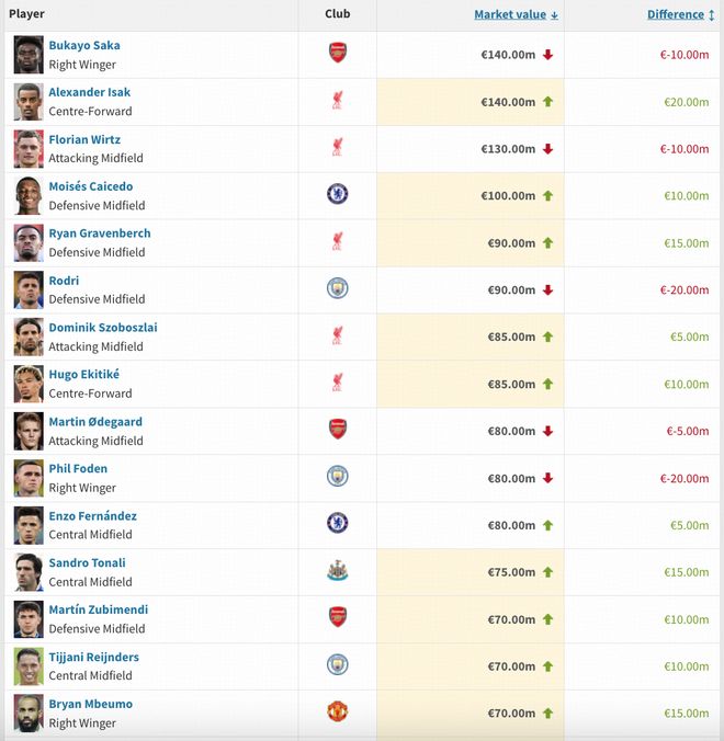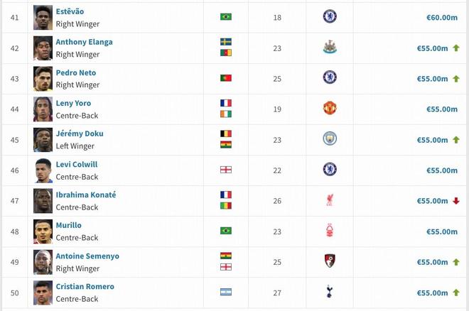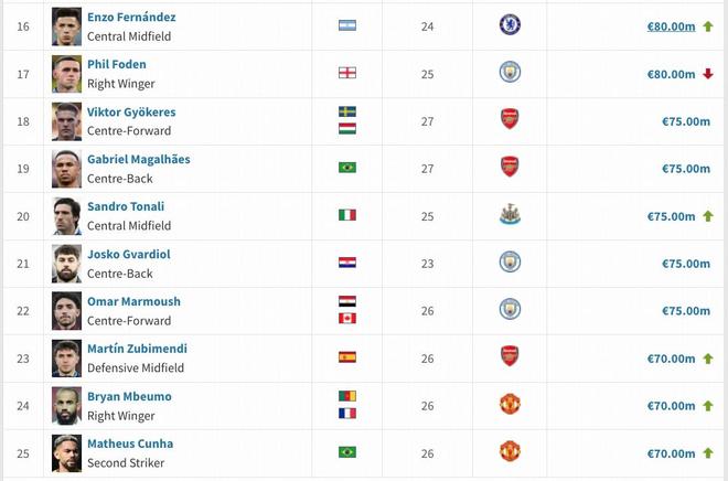 德转列英格兰球员身价TOP10:贝林厄姆1.6亿欧第1,埃泽上榜